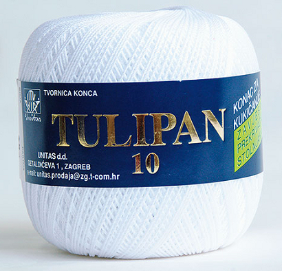 Tulipan 10 Sestava: 100% bombaž Navitje: 235m/ 50g Debelina kvačke: 1,5 - 2 mm Na voljo bel in surov |