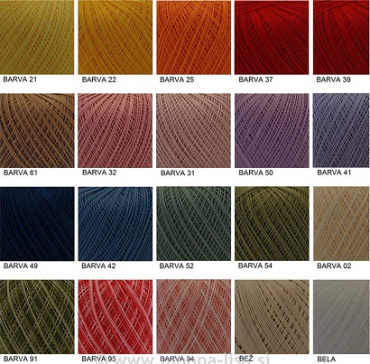 Tulipan 15 Sestava: 100 % bombaž Navitje: 335m/50 g Debelina kvačke: 1,00 - 1,50 mm Na voljo bel in surov |