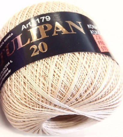 Tulipan 20 Sestava: 100 % bombaž Navitje: 410m/50g Debelina kvačke: 0,75 - 1,25 mm Na voljo bel in surov |