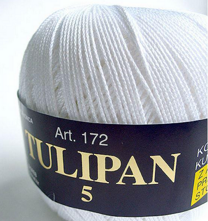 Tulipan 5 Sestava: 100 % bombaž Navitje: 270m/100g Debelina kvačke: 2-2,5mm Na voljo bel in surov |