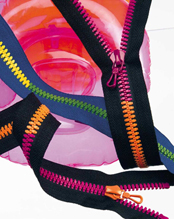 Barvni, metalizirani in tranparentni zobci, fluoroscentni pigmenti, raznobarvni trakovi, širok spekter ključev in kombinacije vseh elementov, omogočajo prilagodljivo in živahno uporabo na različnih proizvodih.